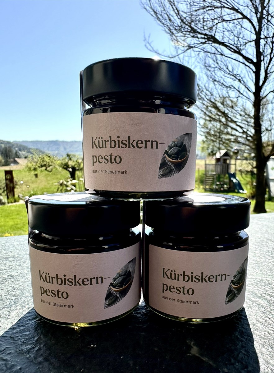 Ein aus Kürbiskernen, Kernöl, Kräutern und Gewürzen gemachtes, herzhaftes Kürbiskernpesto, das von Kennern geliebt wird!